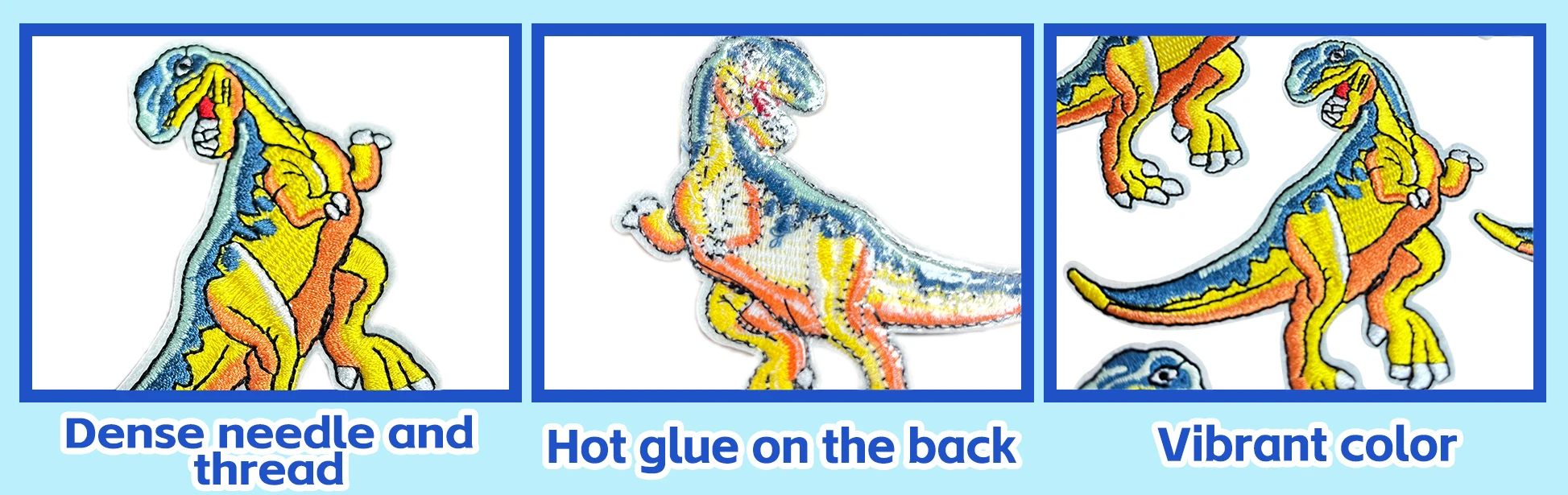 シェニールパッチが落ちないように、数針縫い付けることを忘れないでください。パッチの裏側には熱接着剤が付いていますが、加熱しないと貼り付きません。