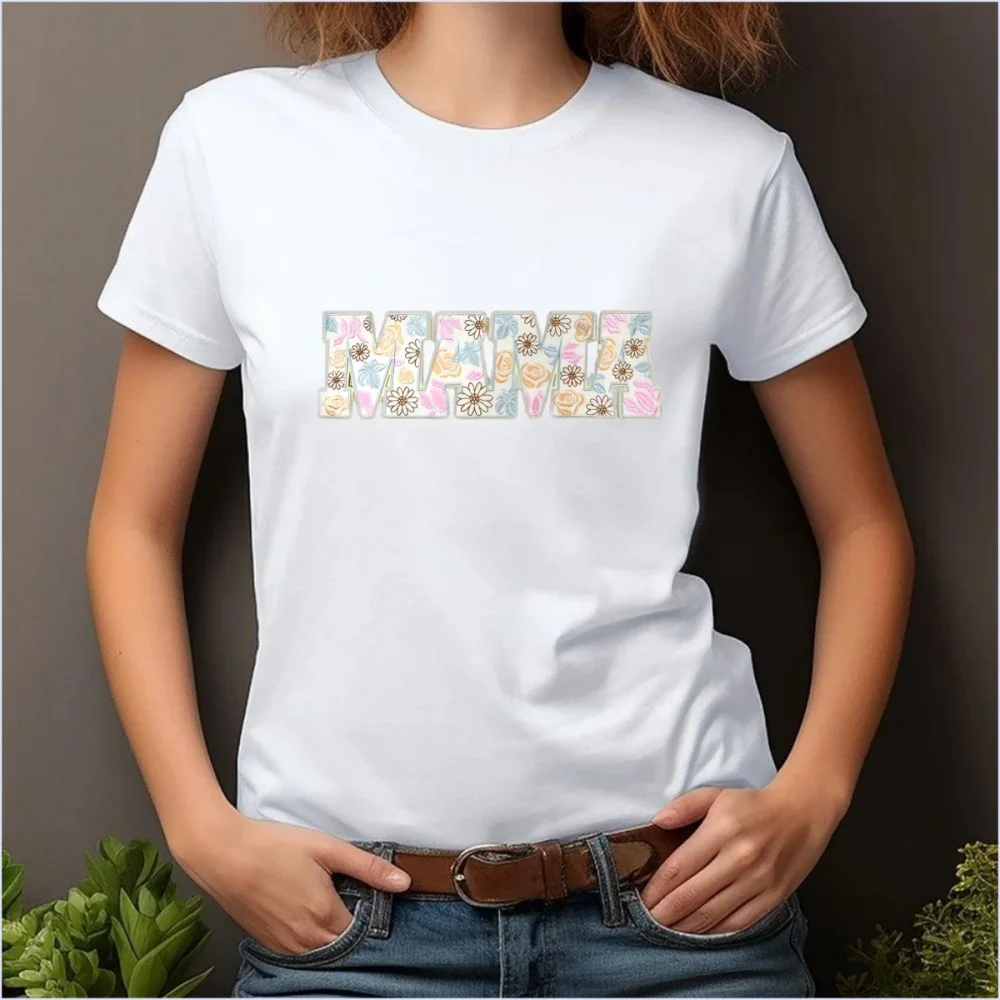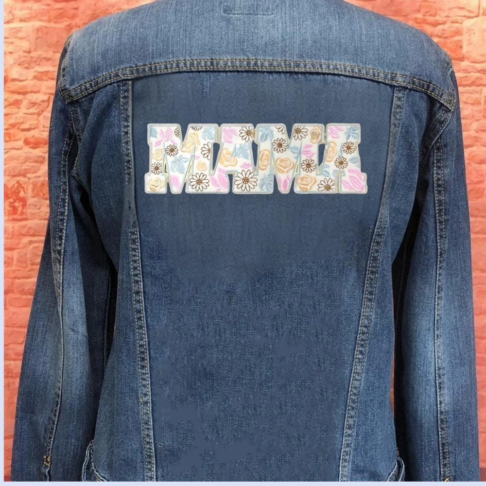 This beautiful floral MAMA patch features intricate embroidery of daisies and roses, making it an ideal way to celebrate Mother's Day or personalize any fashion item.
