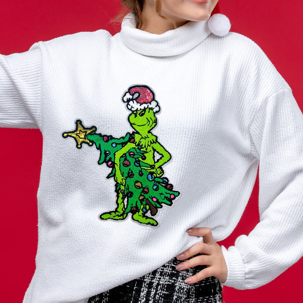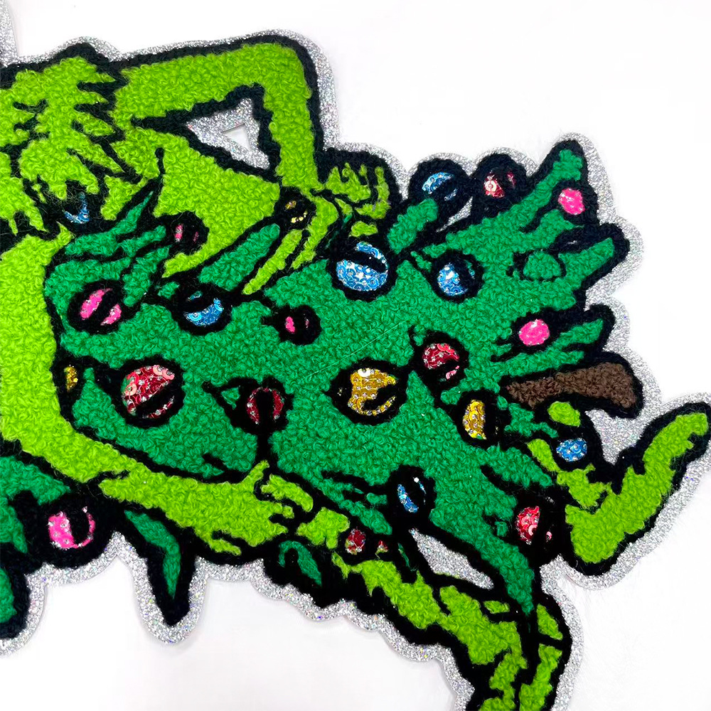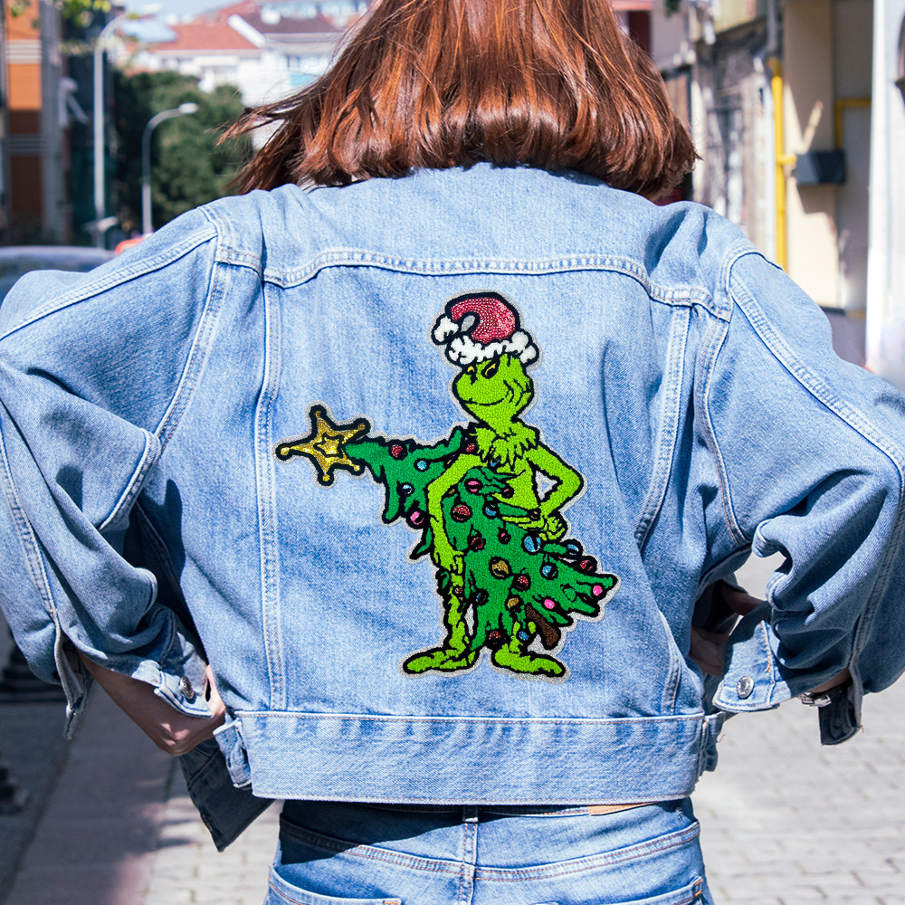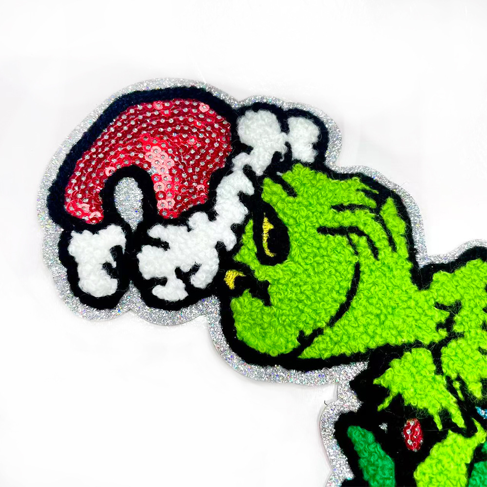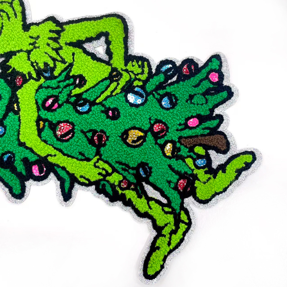 シェニールパッチが落ちないように、数針縫い付けることを忘れないでください。パッチの裏側には熱接着剤が付いていますが、加熱しないと貼り付きません。