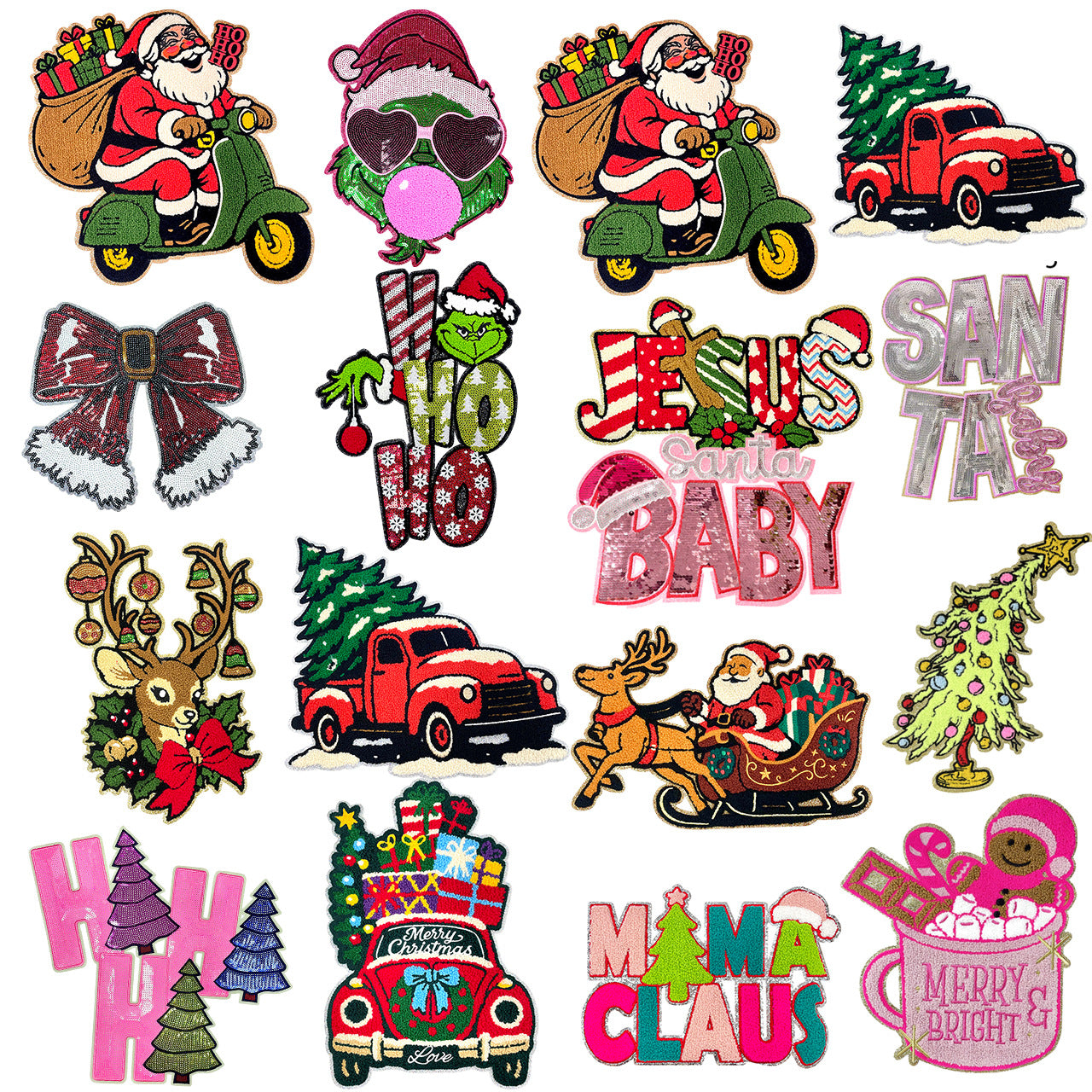 Back Hot Melt Adhesive * Towel Embroidery Santa Motorcycle